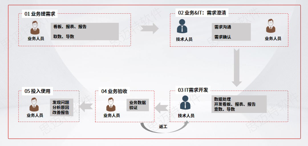 大部分业务人员在面对数据分析时,看到复杂的算法、庞大的数据、眼花缭乱的图表,继而望而却步,但实际上,大家只是被传统数据分析的链路影响了,只是缺乏对数据进行分析的技术和手段。解决上述问题的最快方式就是让业务掌握基本的数据分析能力,不需要依赖数据分析人员就能自助进行数据分析,快速响应业务决策。