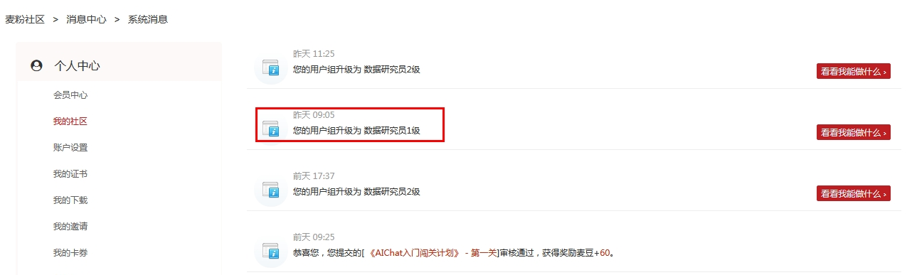 用户组级别问题就象升级打怪,级别越高,代表社区权限功能增加,就象现实社会,有人需要名份(用户组级别),有人需要金钱(麦豆)可以兑换商品.但是我还是建议消耗麦豆后用户组级别不要降低,这样可以名利双收,积分用于用于用户组级别,麦豆用于兑换商品.同时也建议社区增加推广转介绍来获取麦豆,这样来学习的人就会更多了.